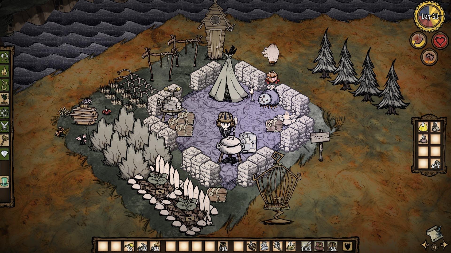 《饥荒》是一款独特的生存冒险游戏。玩家被困在荒野中,需要利用环境中的资源生存下去。游戏拥有独特的哥特式美术风格,充满挑战性的生存机制和丰富的内容。